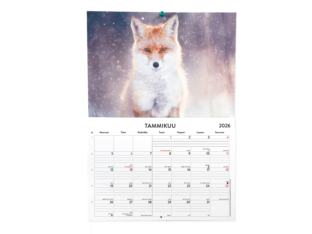Omilla kuvilla kuvitettava seinäkalenteri.